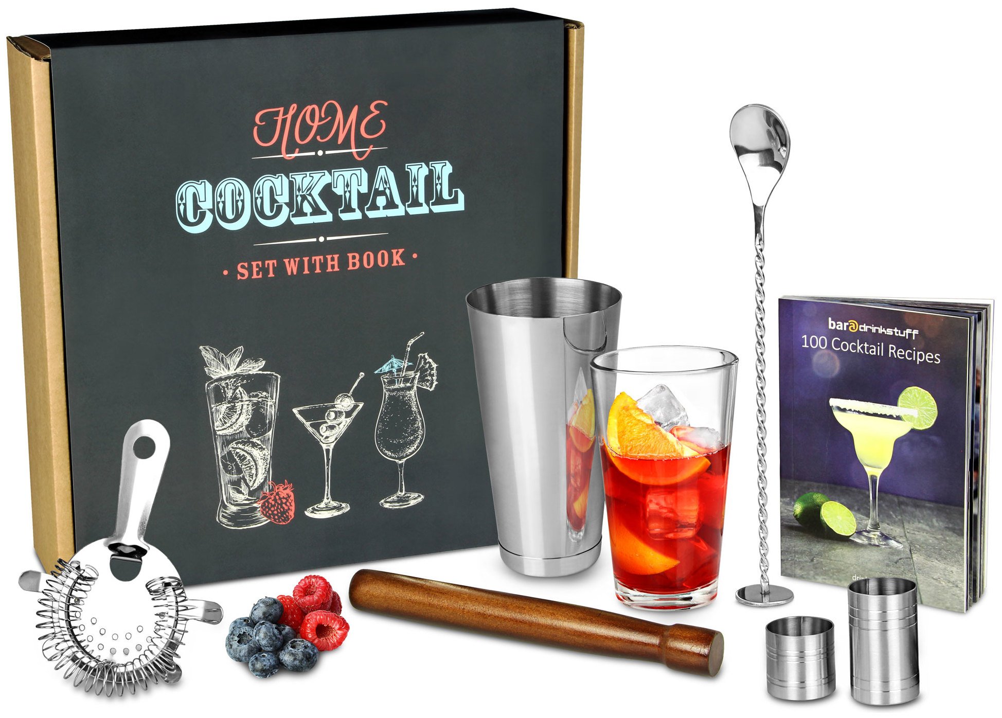 CocktailMeister Cocktailset av hög kvalitet, drinkset, professionellt set med cocktailshaker, cocktailset i rostfritt stål, perfekt för hem eller bar Inkluderar recepthäfte och presentask