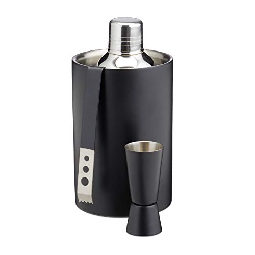 Relaxdays 4-cocktailset, 550 ml shaker, isång, flaskkylare, dubbelbägare, rostfritt stål bar kit, svartsilver