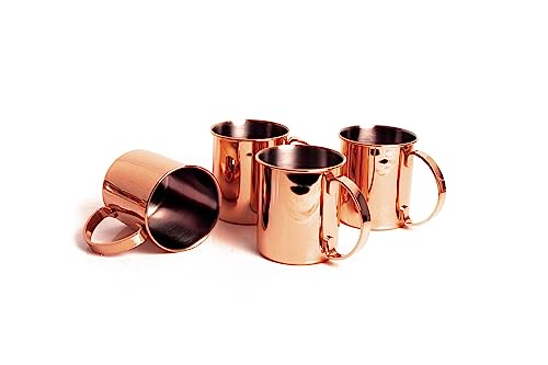 Echtwerk kopparmugg-set, rostfritt stål glas, cocktailset, cocktailglas perfekt för gin, vodka, öl och kalla drycker, presentset, 4 x kopparkoppar 500 ml, 1 x 2 cl/4 cl, silver