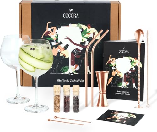 Cocora Gin-Tonic presentset | Cocktailset med 11 delar | Gintillbehör | Gin Tonic Cocktailglasögon, måttkopp, sugrör | Örter | Present för män