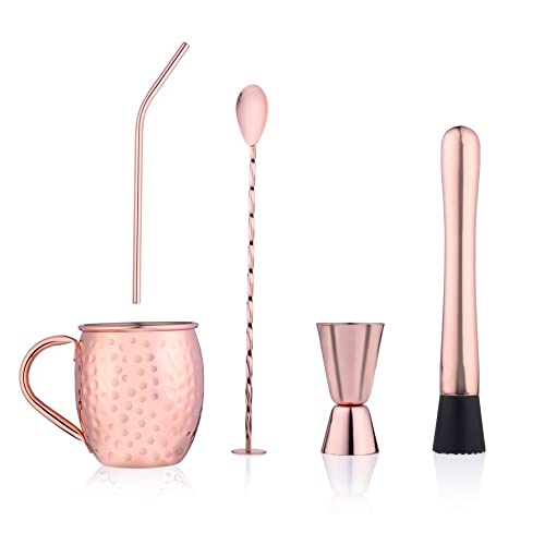 Mojito Cocktail Glas Set Cocktailset, Gåvor för Män och Kvinnor, Mojitos dricksglas Uppsättning av 4 med Professionell Rostfritt Stål Bartillbehör, Bartender Presentlåda kan Göras Personlig