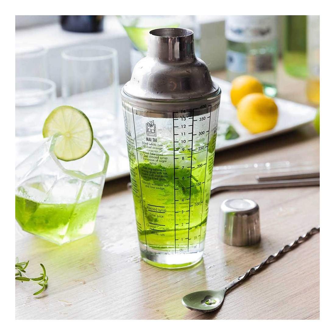 Cocktailshaker i glas 400 ml med recept och måttangivelser