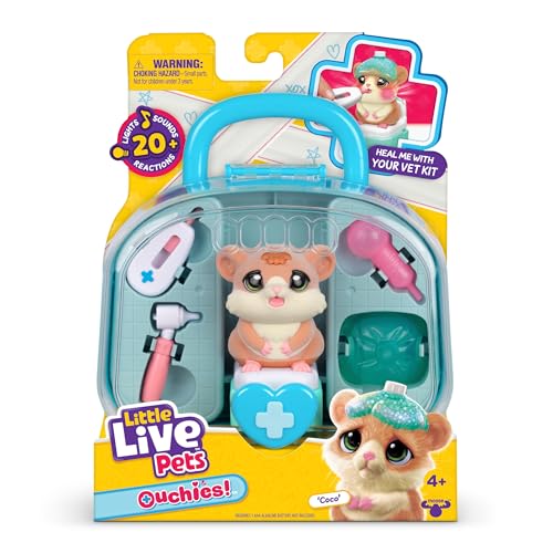 Little Live Pets Ouchies Veterinary Kit - Coco hamstern, interaktiv leksak, lysande kinder, tillbehör och 16,7 cm (6,7 tum) lekset, diagnos och vård, + med 20 ljud och reaktioner, oändligt spela