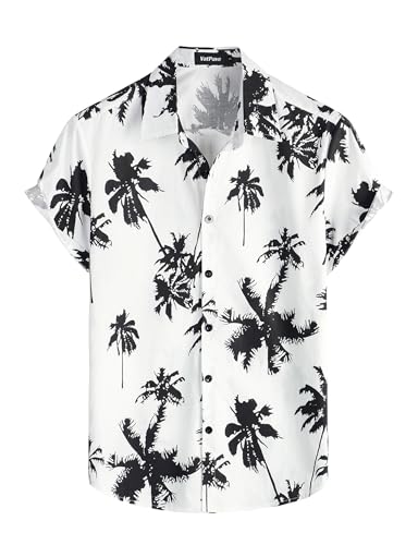 VATPAVE Herr 100% bomull Hawaiianska skjortor Button Down kortärmade strandskjortor sommar vardag aloha skjortor, Vitt kokosnötträd, XL