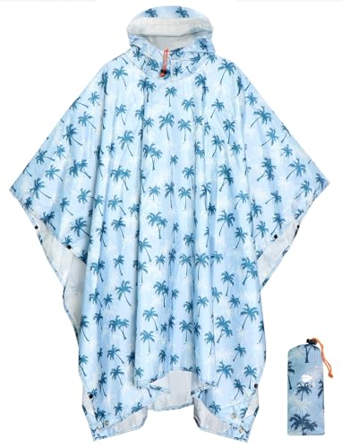 Anyoo Vattentät regnponcho, lätt, återanvändbar regnrock för vandring, med huva, för utomhusaktiviteter, en storlek, Kokosnötträd, one size