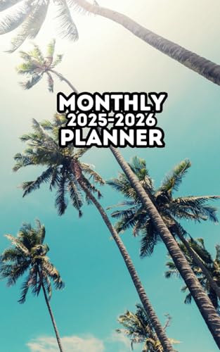 2025-2026 Small Size Monthly Planner: 5x8 Inches of Two Years Calendar Schedule Organizer January to December with Holidays Tropical Coconut Tree Cover