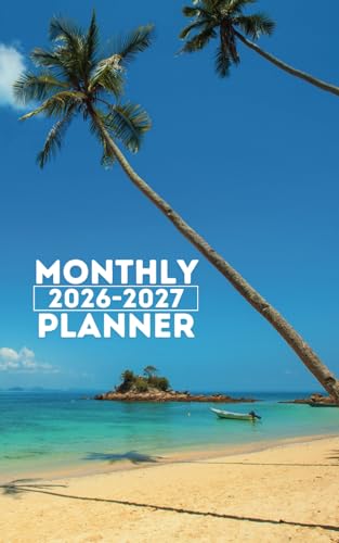 2026-2027 Small Size Monthly Planner: 5x8 Inches of Two Years Calendar Schedule Organizer January to December with Holidays Summer Coconut Tree and Beach Cover