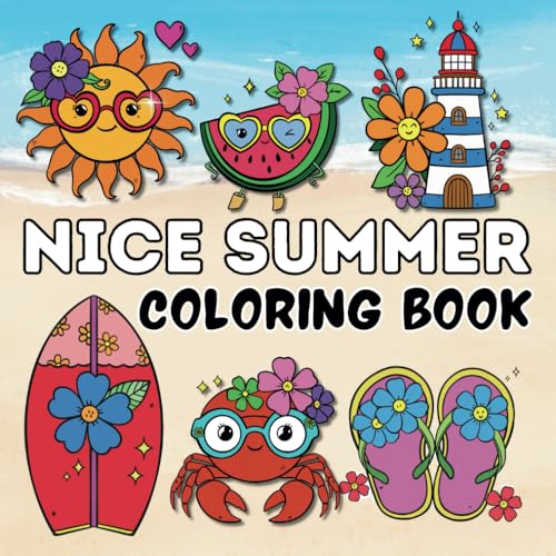 Nice Summer Coloring Book: Beach Cozy Vibes Simple Coloring of Lighthouse, Crab, Swimwear, Coconut, Palm Tree, Shell, Sandcaste, Starfish, Octopus, and many more