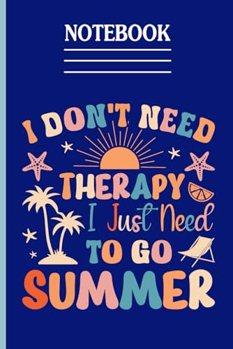 I Don't Need Therapy I Just Need To Go Summer With Pattern Coconut Tree, Cute Sun, Starfish On Dark Blue Cover Fun Gift For Everyone: Notebook, 120 Lined Pages