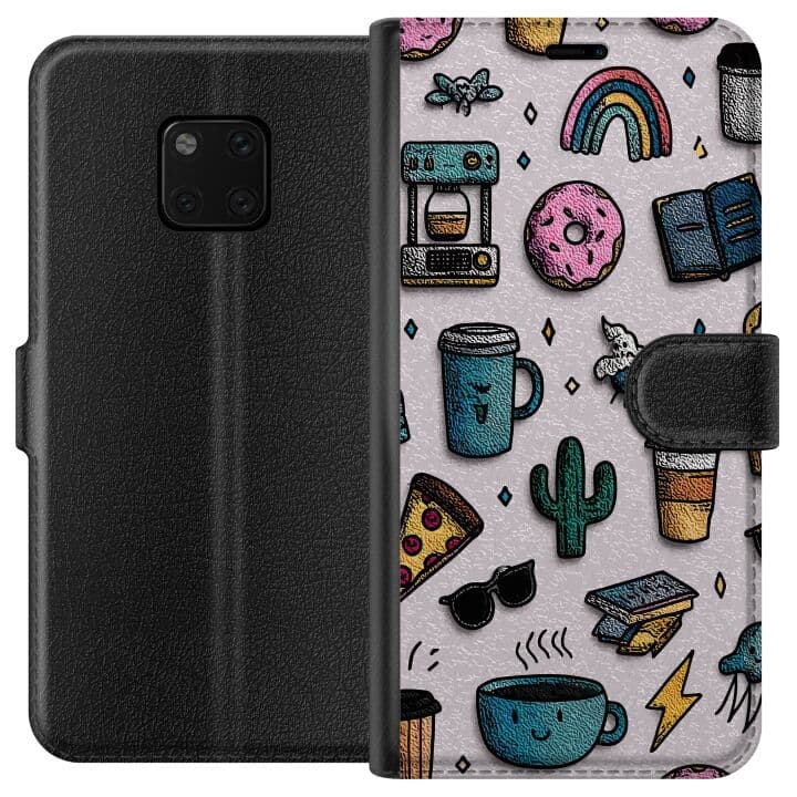 Huawei Mate 20 Pro Plånboksfodral Kaffe och donut mönster med lekfull färgglädje och retro känsla perfekt för dig som älskar fika och glädje