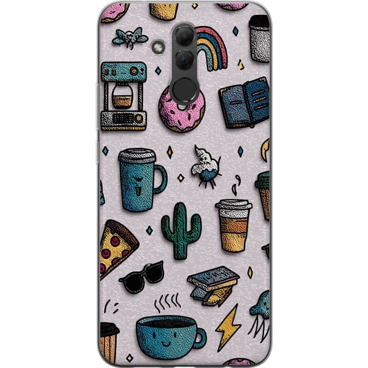 Huawei Mate 20 lite Genomskinligt Skal Kaffe och donut mönster med lekfull färgglädje och retro känsla perfekt för dig som älskar fika och glädje