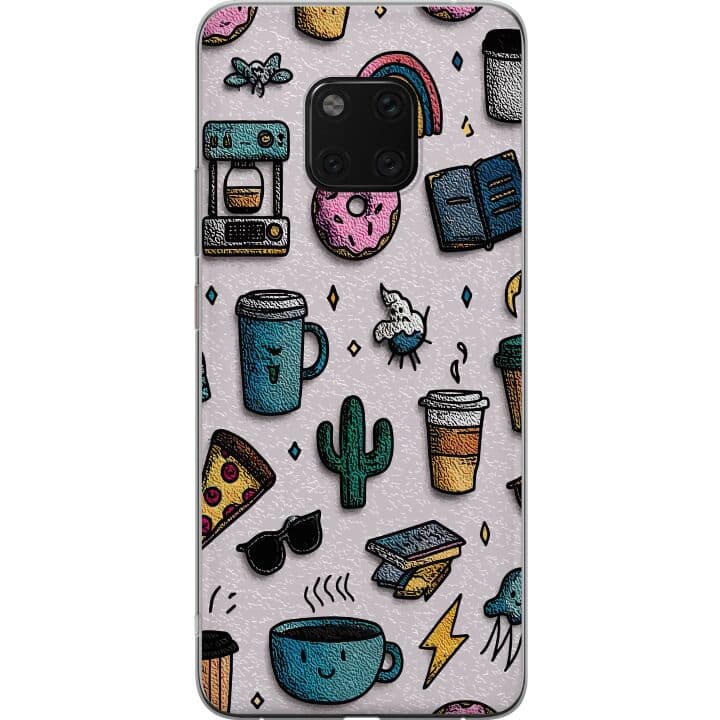 Huawei Mate 20 Pro Genomskinligt Skal Kaffe och donut mönster med lekfull färgglädje och retro känsla perfekt för dig som älskar fika och glädje
