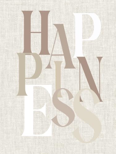 Decorative Coffee Table Book for Interior Design Display: HAPPINESS - Aesthetic Minimalist Beige Cover For Stacking & Modern Living Room Styling - 400 Dot Grid pages