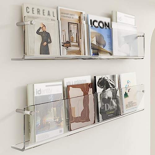 Brochure Display Stand Magazine Rack Acrylic Brochure Holder Wall Mount, Classroom Clear Bookshelf Storage Organizer/Magazine Rack, for Office Waiting Room Church Coffee Shop Home Display (Size : Len