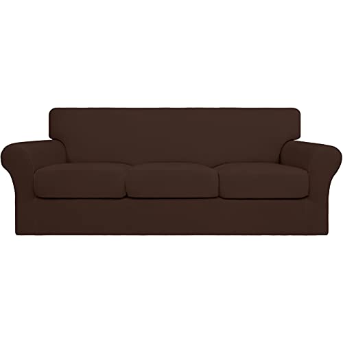Lättgående 4 delar, stretch, mjukt sofföverdrag för hundar – tvättbart sofföverdrag för 3 separata soffkuddar – elastiskt möbelskydd för husdjur, barn (soffa, kaffe)