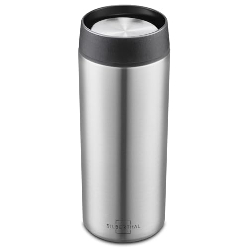 SILBERTHAL Thermo Mug 350ml Stainless Steel, Leak Proof To Go with Ceramic, Ceramic Thermos Mug, Silver Coffee Mug, Up to 6 Hours Warm