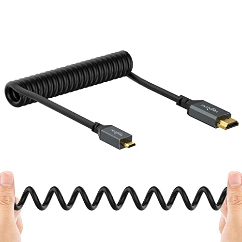 Twozoh Micro HDMI till HDMI Spiral Kable, Coiled Micro HDMI to Full HDMI Kable Supports HDMI 2.0, 3D 4K UHD, 1080p (Extended up to 1.5M)