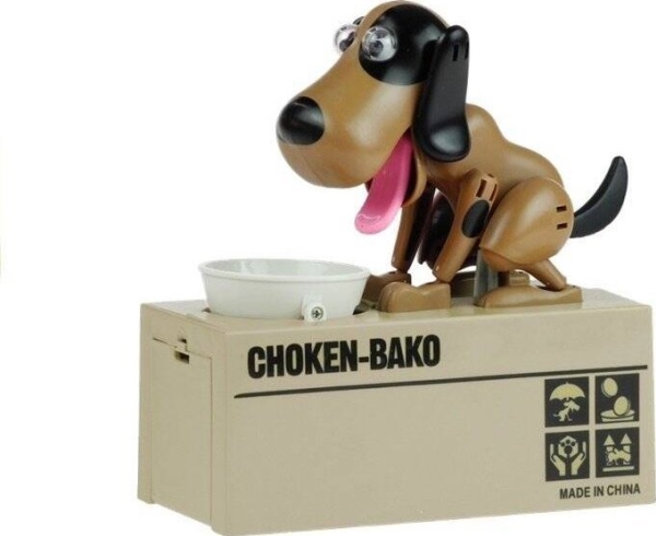 Leantoys Piggy Bank Coin Eating Dog Mörkbrun Batten Lean Toys