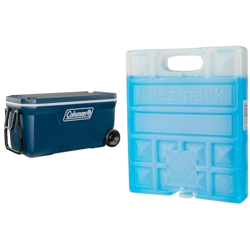 Coleman Xtreme kylare, stor cool låda med 90 l kapacitet, högkvalitativ PU full skumisolering, sval upp till 5 dagar, bärbar cool box; för camping, festivaler, blå & Campingaz 9378 Fryspaket, Blå