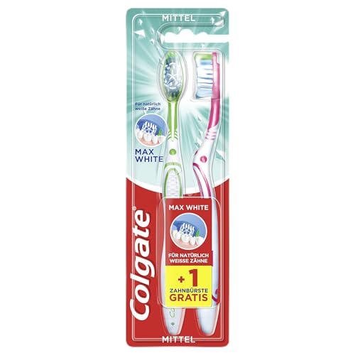Colgate tandborste Max White, medium, 2 stycken – handtandborste för naturliga vita tänder, med medelhårda borst