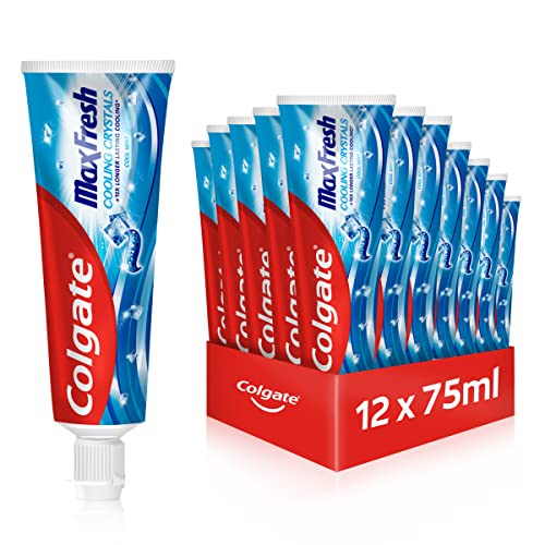 Colgate Tandkräm Max Fresh Cooling Crystals 12 x 75 ml — effektiv tandrengöring för långvarig friskhet och en ren munkänsla — håller tänderna vita och bekämpar karies