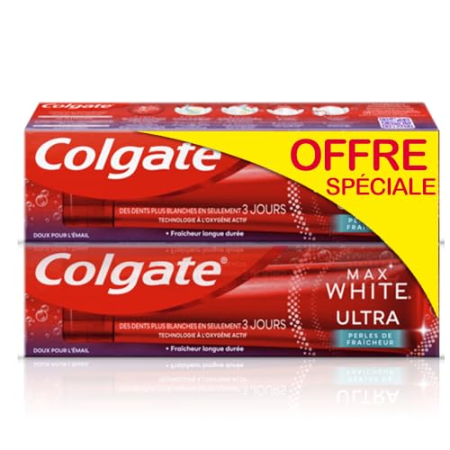 COLGATE - Vithet tandkräm Max White Ultra Freshness Pearls - långvarig fräschhet - tar bort fläckar på djupet* - fluortandkräm - 2 x 75 ml