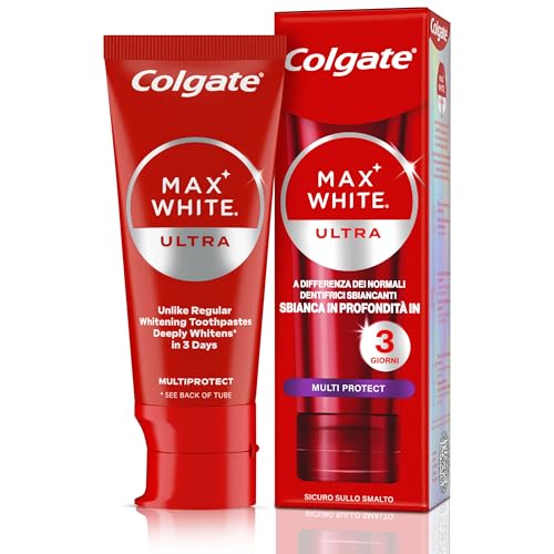 Colgate Max White Ultra Multiprotect tandkräm 50 ml | vitare tänder på 3 dagar* | Skyddar emaljen och känsliga tänder | tandblekning | tar bort djupa fläckar