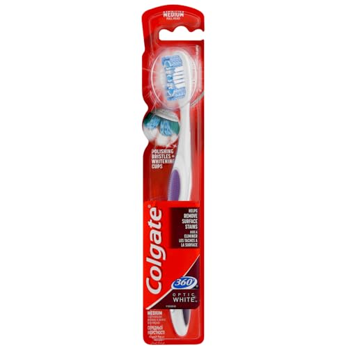 Colgate Max White 360 Tandborste Medium Hårdhet, 1 De, Tandblekning, Ta bort fläckar, Rengör områden med svår åtkomst, Tung- och kindsrenare, Eliminerar Dålig andedräkt
