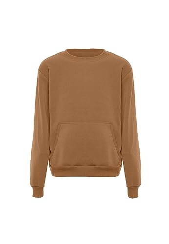 Colina Stickad tröja för män med rund hals polyester kamel storlek L, kamel, L