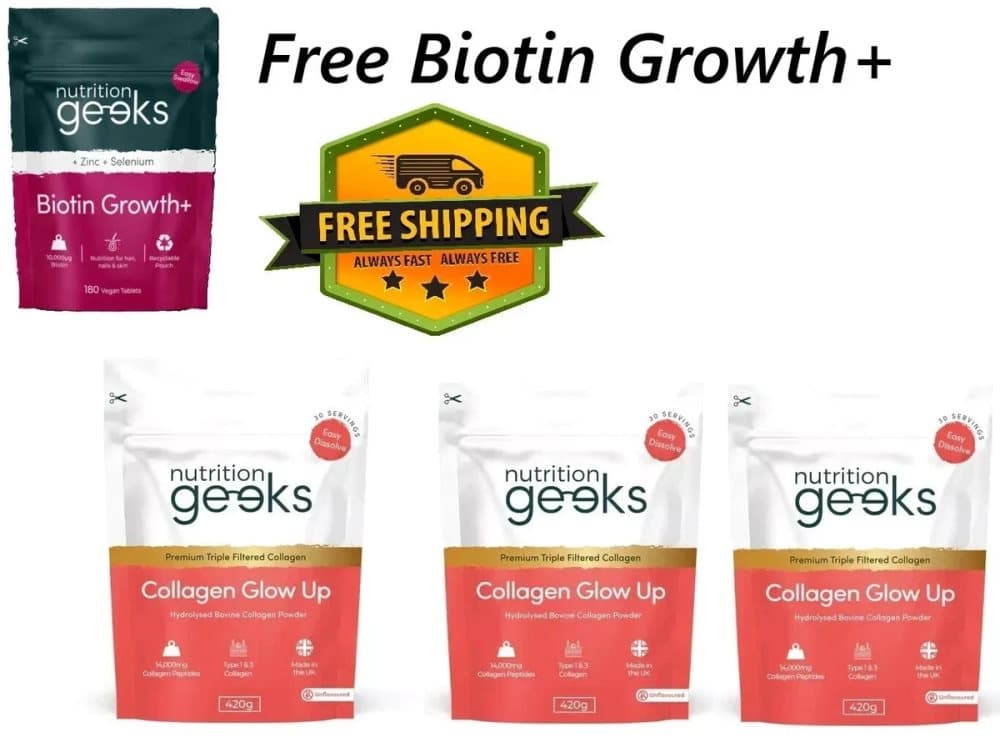 3X Nutrition geeks Collagen Glow Up Powder New Improved 14,000mg 420g + gift