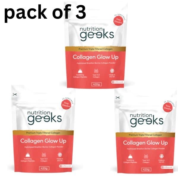 3 packs Nutrition Geeks Collagen Glow up Powder New & Improved 14000Mg
