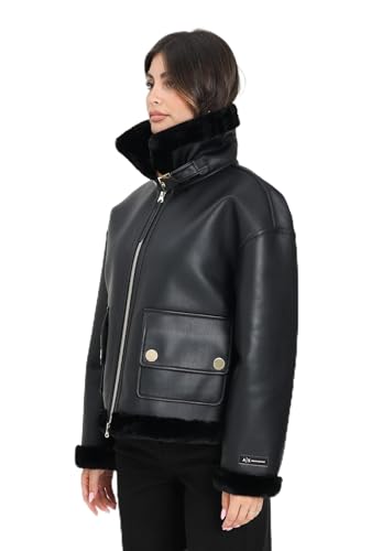 Armani Exchange Fur Contrast Collar Side Logo Patch Blouson Jacka, Svart, S Dam, Svart, S