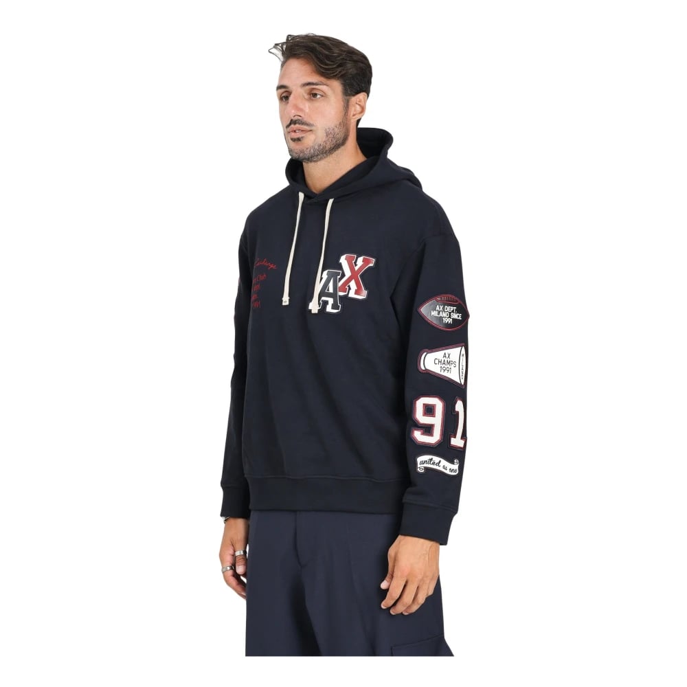 Armani Exchange, Sweatshirts & Hoodies , Herr, L, Bomull, Blå hoodie med sportig college-stil