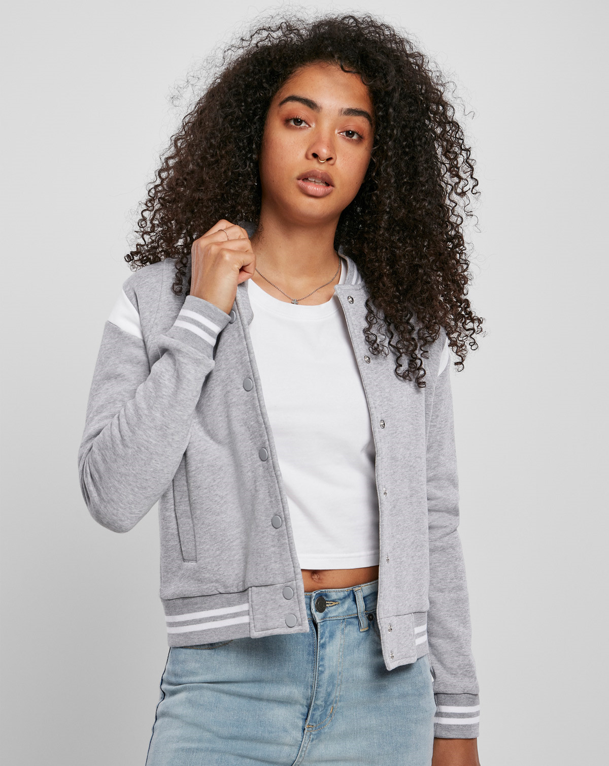 Urban Classics Ladies Organic Inset College Sweat Jacket (Grå / Vit, 2XL) 2XL Grå Vit