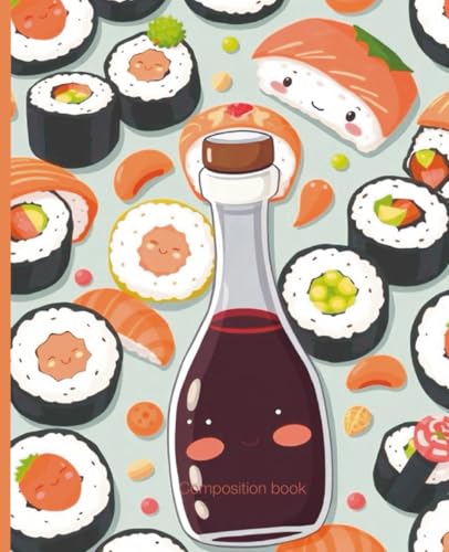 Composition notebook: Sushi Roll Party Notebook | College Ruled | Cute Kawaii Journal with Sushi Pattern | 7.5 x 9.25 in, 100 Pages