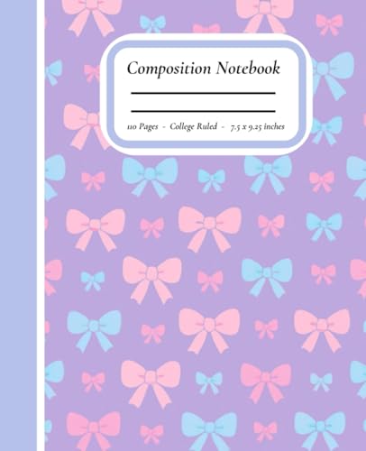 Purple Bow Party: Composition Notebook: College ruled, 7.5" x 9.25", 110 pages, soft matte cover, blue and pink bows, purple background