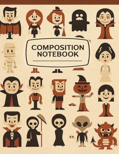 Vintage Halloween Party Composition Notebook: Retro College Ruled Writing Journal with Spooky Vintage Monsters, Witches, and Ghosts – 8.5" x 11", 120 Pages