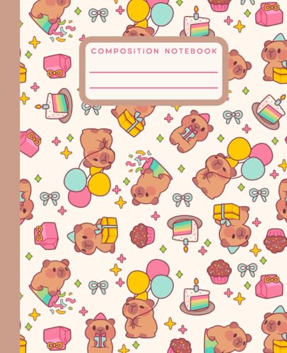Composition Notebook: Capibara party themed Notebook | College Ruled | Journal for planning, goals, affirmations | 7.5 x 9.25 in, 100 Pages