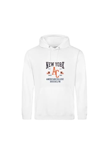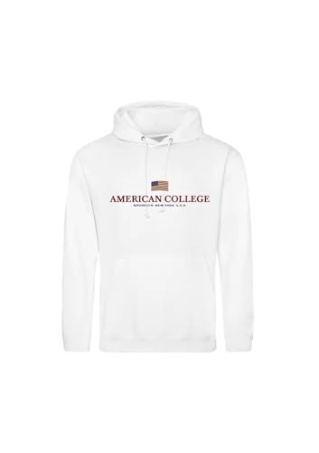 AMERICAN COLLEGE USA Tröja huvtröja blandad herr dam sweatshirt, Vitt och blått, L