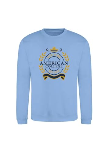 AMERICAN COLLEGE USA Tröja tröja med tryck varma kläder blandade män och kvinnor casual modell ACSCRW5 himmelsblå S, turkos, S