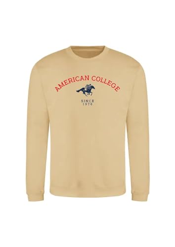 AMERICAN COLLEGE USA Tröja tröja med tryck varma kläder unisex barn pojkar och flickor casual modell ACSCRW3 beige 12 år, Beige färg, 12 �r