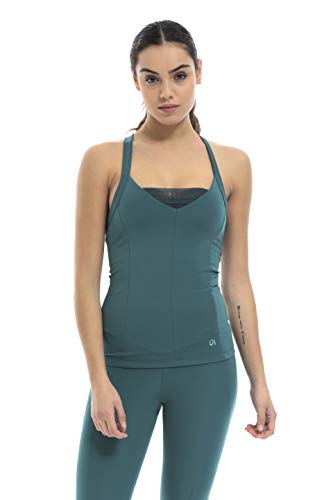 Shambhala Barcelona Collina Tank/Återvunnen Plast Polyester Sportärmlös T-shirt Kvinna, Skog Grön, Extra L