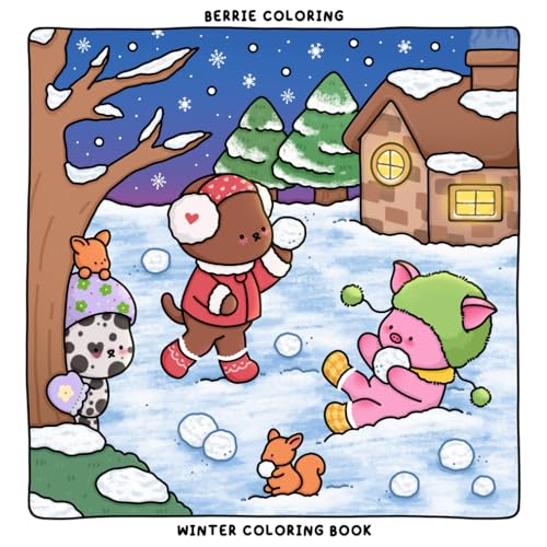 Berrie Coloring Winter: Cute and Cozy Coloring Book for Adults & Teens Featuring Easy to Color Festive Animal Illustrations and Christmas Scenes