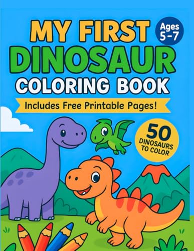 My First Dinosaur Coloring Book: 50 Fun Dinosaurs to Color - Includes Free Printable Pages via QR Code | A Coloring Book for Kids Ages 5–7