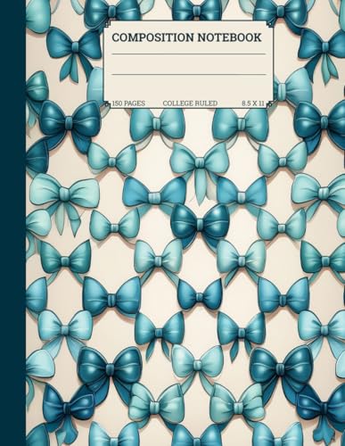 College Notebook: Color blue bows college ruled notebook for composition, preparation and assignment | Code 2|Size 8.5 x 11 inch | 150 Pages