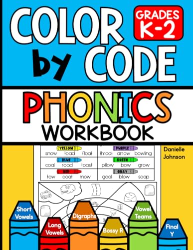 Color by Code Phonics Workbook for Kindergarten, First Grade, and Second Grade: Short Vowels, Long Vowels, Digraphs, Bossy R, & Vowel Teams