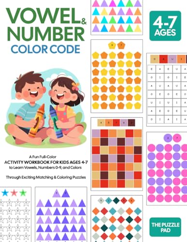 Vowel & Number Color Code: A Fun Full-Color Activity Workbook for Kids Ages 4-7 to Learn Vowels, Numbers 0-9, and Colors Through Exciting Matching & Coloring Puzzles