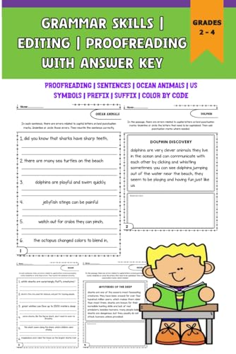 Grammar Skills Workbook | Editing | Proofreading | Sentences | Ocean Animals | US Symbols | Prefix | Suffix | Color By Code