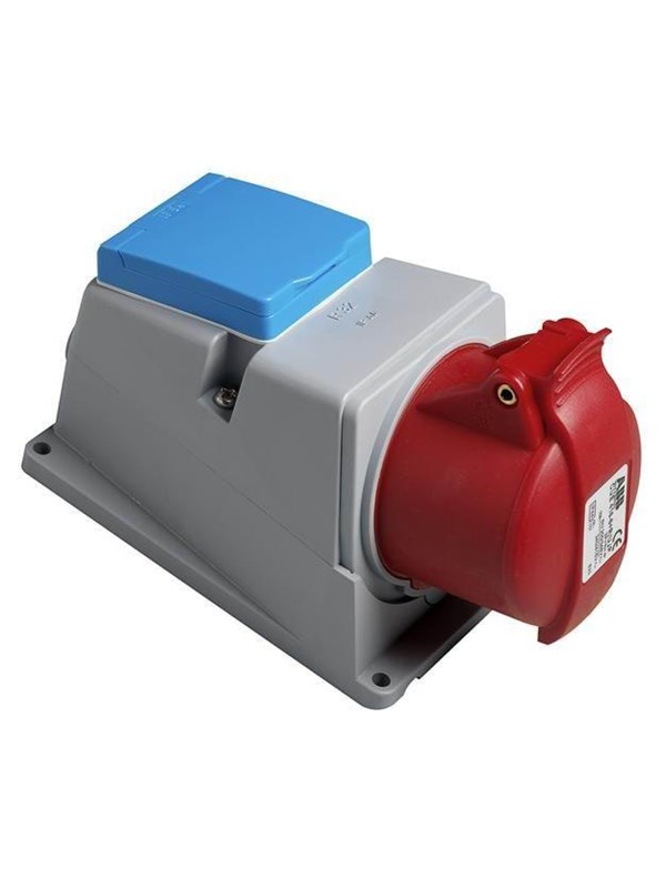 ABB Surface socket-outlet with dk-outlet 3p+n+e 16a 250vac ip44 clock position of grounding contact 6 hour color code red