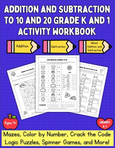 Addition and Subtraction to 10 and 20 Grade K and 1 Activity Workbook: Mazes, Color By Number, Crack the Code, Logic Puzzles, Spinner Games, and More!